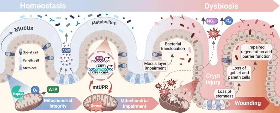 Urbauer E, Aguanno D, Mindermann N, Omer H, Metwaly A, Krammel T, Faro T, Remke M, Reitmeier S, Bärthel S, Kersting J, Huang Z, Xian F, Schmidt M, Saur D, Huber S, Stecher B, List M, Gómez-Varela D, Steiger K, Allez M, Rath E, Haller D*. Mitochondrial perturbation in the intestine causes microbiota-dependent injury and gene signatures discriminative of inflammatory disease. Cell Host & Microbe 2024 Jul 10 doi: 10.1016/j.chom.2024.06.013