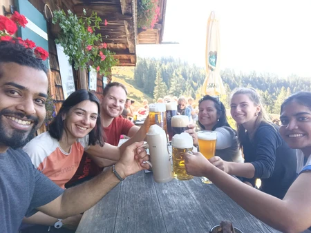 Am 7. Oktober 2024 haben wir unseren ersten gemeinsamen Gruppenausflug unternommen – und das bei traumhaftem Wetter! Bevor das Semester und der Winter offiziell starten, haben wir die Gelegenheit genutzt, um noch einmal die Bergluft zu genießen und sind auf die Gindelschneidalm gewandert. Die malerische Landschaft und die entspannte Atmosphäre waren perfekt, um als Team weiter zusammenzuwachsen und uns bei der gemeinsamen Bewegung auszutauschen.