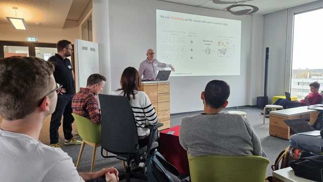 Die Veranstaltung, an der mehr als 40 Teilnehmende und Dozierende beteiligt waren, umfasste vormittags informative Vorträge führender Expertinnen und Experten des Fachgebiets und nachmittags praktische, anwendungsorientierte Workshops. Am ersten Tag standen die Grundlagen verschiedener Technologien sowie etablierte Datenverarbeitungsstandards im Mittelpunkt. An den folgenden beiden Tagen konnten die Teilnehmenden gemeinsam mit den Entwicklerinnen und Entwicklern aktueller Spitzenwerkzeuge wie LIANA+, MistY, Spapros, Tangram und NiCo praktische Erfahrung sammeln.